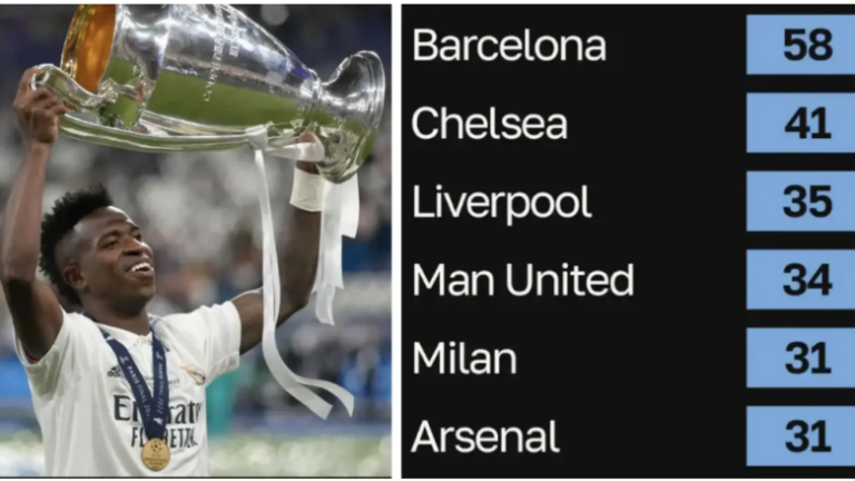 Manchester United është gjithashtu pjesë e listës, por kohët e fundit është tejkaluar nga Liverpooli dhe Chelsea.