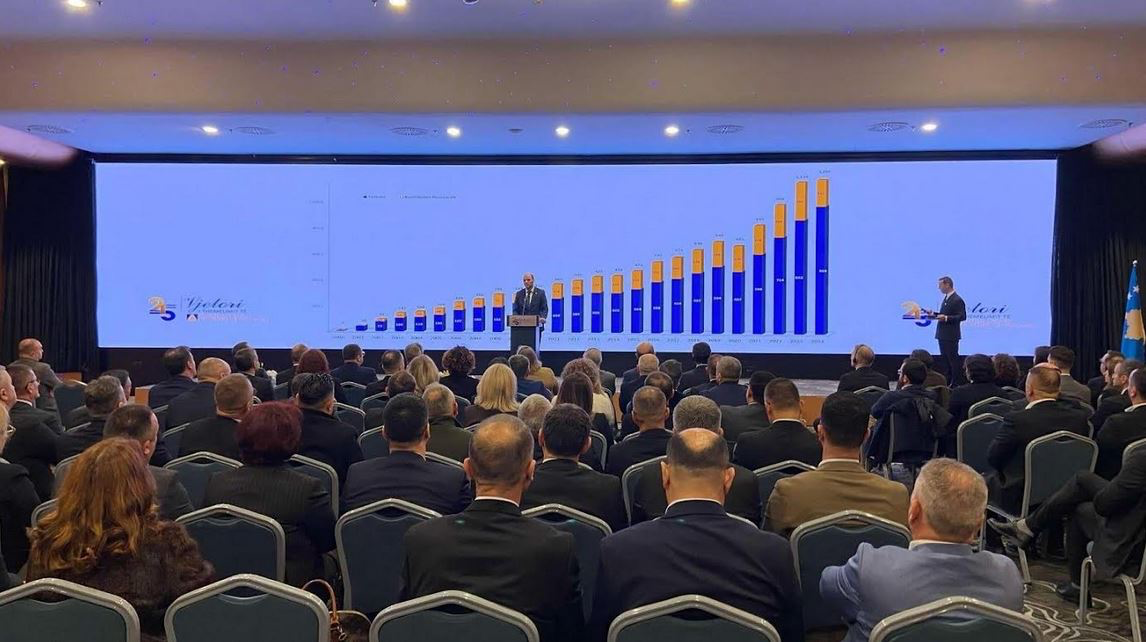 Ai theksoi se si rezultat i punës profesionale, me integritet dhe ndershmëri, efektivitet dhe transparencë, Administrata Tatimore e Kosovës për këto 25 vjet ka mbledhur mbi 8 miliardë euro tatime, dhe mbi 3 miliardë euro kontribute pensionale, pra, gjithsej mbledhje të të hyrave mbi 11 miliardë euro.