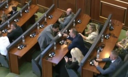 Fillimisht ka përshëndetur deputetin e LDK-së, Besian Mustafën, me të cilin ka shkëmbyer disa fjalë dhe më pas ka shkuar tek kreu i NISMA-s, Fatmir Limaj.