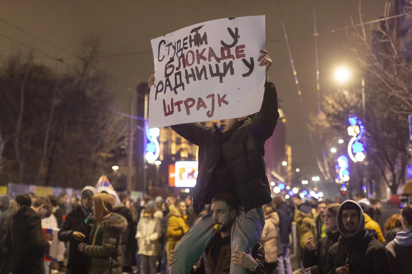 Duke u fryrë bilbilave, bërtitur dhe duke u tallur me zë të lartë, protestuesit thanë se janë të zemëruar që televizioni shtetëror RTS po përcjell akuzat e presidentit Alleksandar Vuçiq se studentët janë paguar nga Perëndimi dhe gjetkë për të mbajtur protesta për të rrëzuar qeverinë e tij.