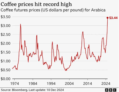 Kjo vjen pasi tregtarët e kafesë presin që të korrat të zvogëlohen, pasi dy prodhuesit më të mëdhenj në botë, Brazili dhe Vietnami, u goditën nga moti i ligë, derisa popullariteti i pijes vazhdon të rritet.