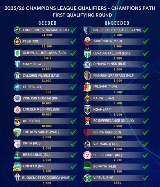 Gjilanasit gjenden në anën e skuadrave favorite për rundin e parë eliminator në Champions, gjë e cila i mundëson që në këtë rund të mos përballet me ekipe të forta si Ludogorets, Steua e Malmo.