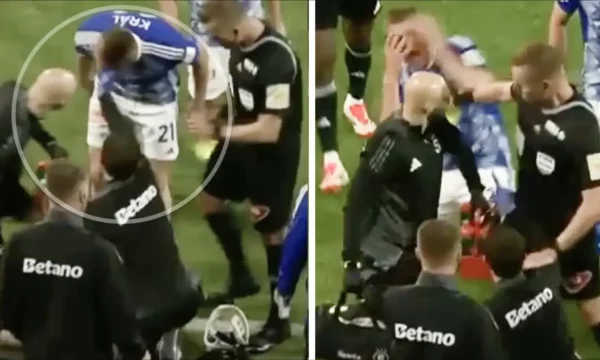 Filip Hrdlicka e goditi me shuplakë Jan Kralin, mbrojtësin e Signa Olomouc, në finalen e Kupës së Çekisë, e luajtur këtë të mërkurë, të cilën Sparta e humbi 3-1.