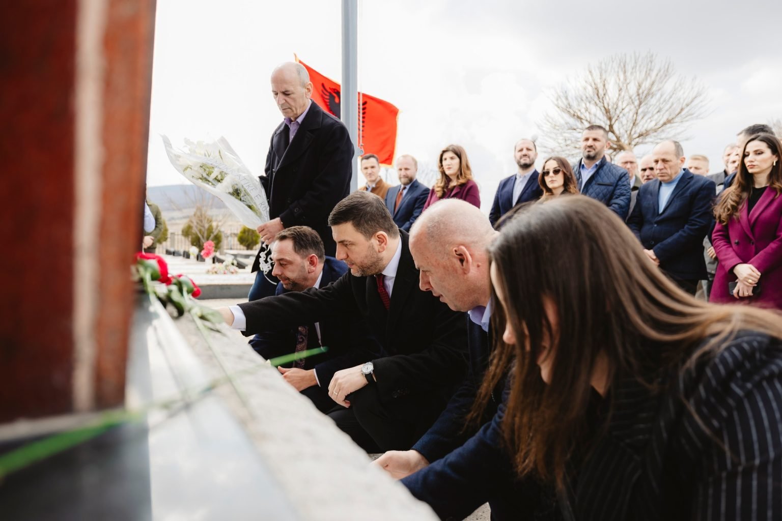Në një postim në Facebook, ai ka shpërndarë fotografi nga homazhet para memorialit të të rënëve nga kjo masakër.