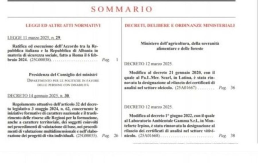 Qeveria italiane e ka shpallur në gazetën zyrtare marrëveshjen e re me Shqipërinë për njohjen e kontributeve të sigurimeve shoqërore ndërmjet dy vendeve.