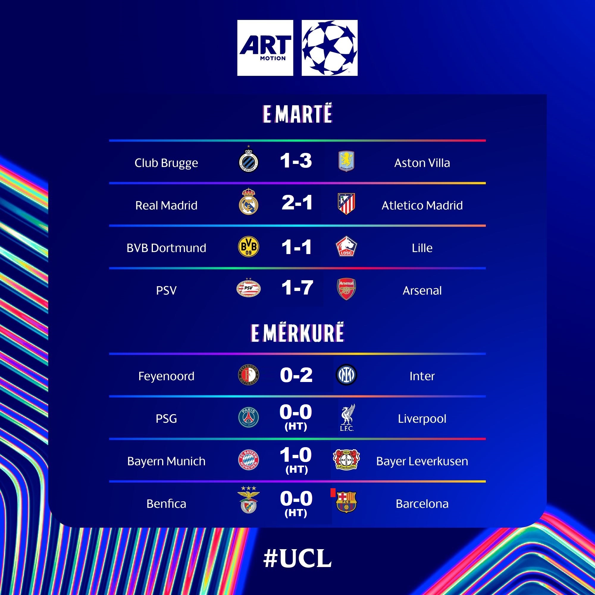 Harry Kane kaloi vendësit në epërsi në minutën e nëntë pas asistimit nga Michael Olise. Ndeshja po emetohet LIVE në Sport 1 në platformën më të madhe në vend, Art Motion. Liga e Kampionëve transmetohet ekskluzivisht