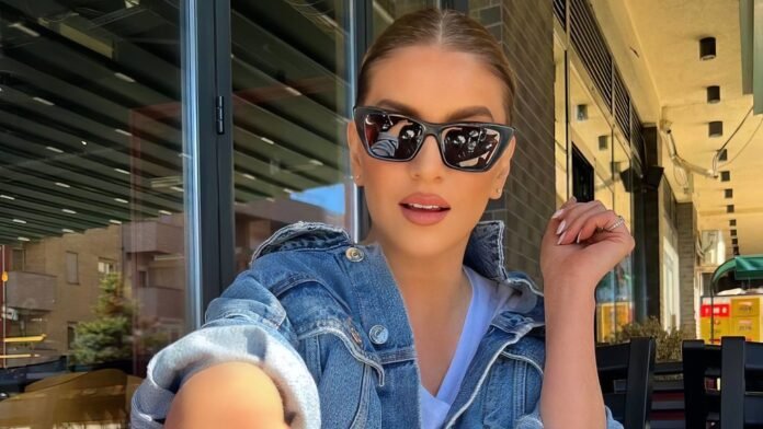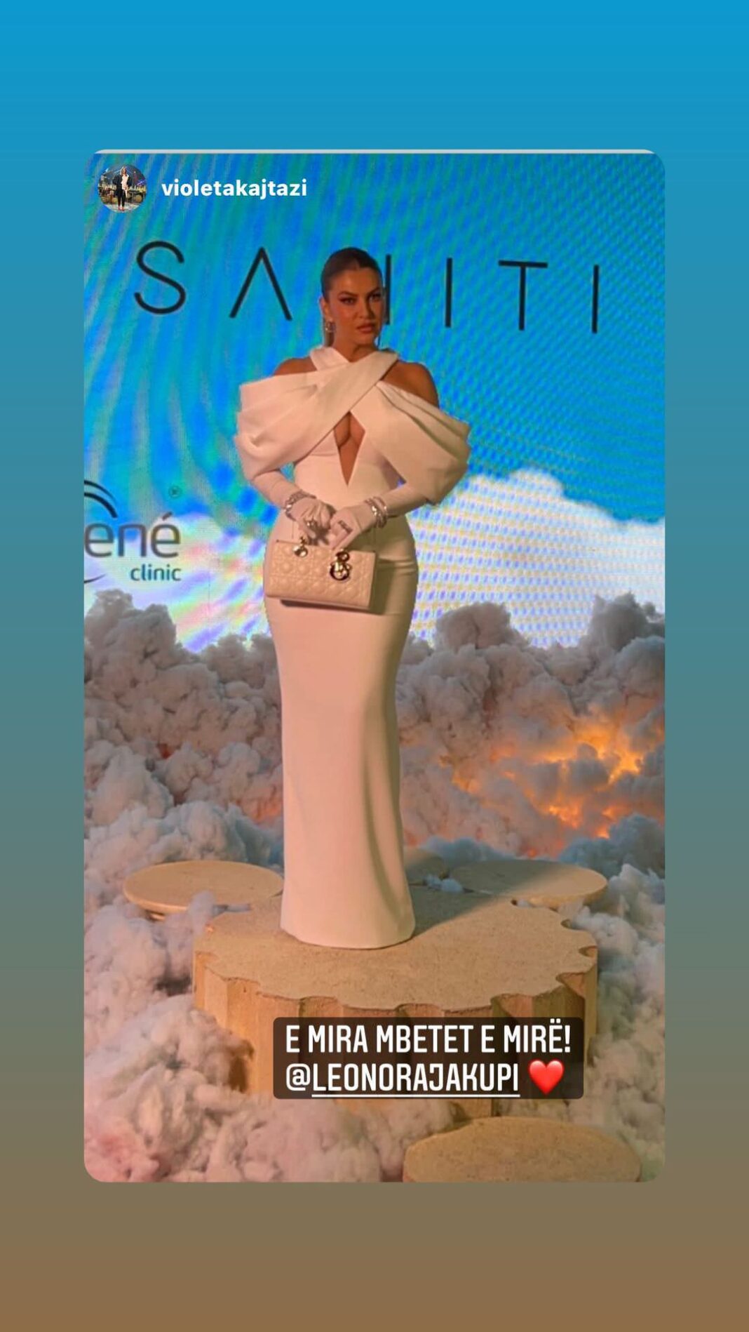 Me fustan te bardhe te hapur tek gjoksi u shfaq mahnitese.