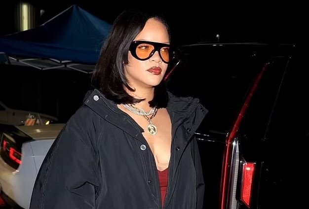 Këngëtarja nga Barbadosi u paraqit tejet elegante me një palë xhinse blu, një xhaketë bomber të zezë, taka dhe syze.