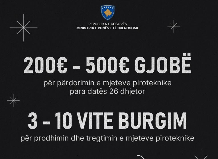 Ministria e Punëve të Brendshme ka bërë të ditur se përdorimi i mjeteve piroteknike është i lejuar vetëm pas datës 26 dhjetor.