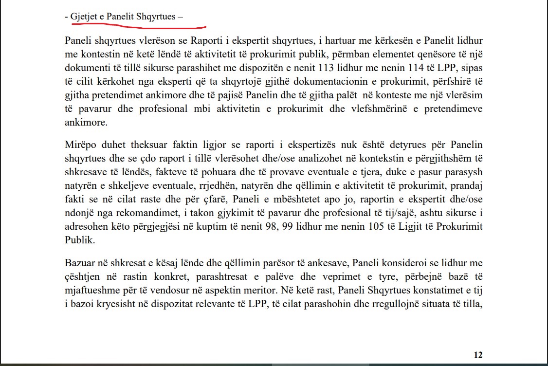 Pavarësisht faktit, që sipas Panelit, autoriteti kontraktues jo vetëm që ka shkelur dispozitat e ligjit, por edhe ka refuzuar t’i zbatojë vendimet e Panelit Shqyrtues në katër raste të njëpasnjëshme, Paneli është mjaftuar vetëm me shqiptimin e një “vërejtjeje” ndaj zyrtarit përgjegjës të prokurimit, pa kërkuar ndëshkimin që parashihet me ligj dhe rregullore.