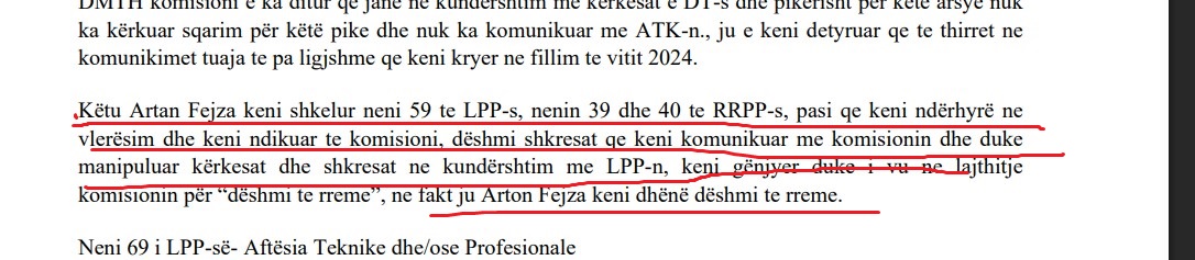 Më tej, Astraplan akuzon se Fejza ka zhdukur provat e shkeljeve, përfshirë edhe fshirjen e refuzimit të kërkesës për rishqyrtim të datës 01.02.2024, pasi ka kuptuar se refuzimi ishte në kundërshtim me LPP-në.