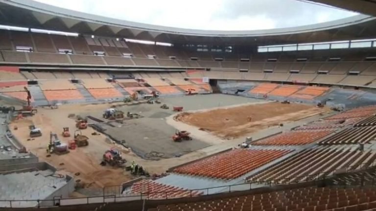 Në videon e publikuar, shihet që stadiumi nuk është ende gati, kur kanë mbetur më pak se katër javë para ndeshjes.