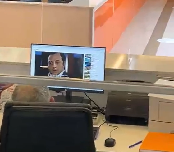 Në videon e xhiruar nga ky lexues, zyrtari komunal shihet i ulur në karrigen e tij të punës përballë kompjuteri dhe duke ndjekur pa u penguar një nga episodet e “Ezelit” ku në fokus është “Xhengizi”.
