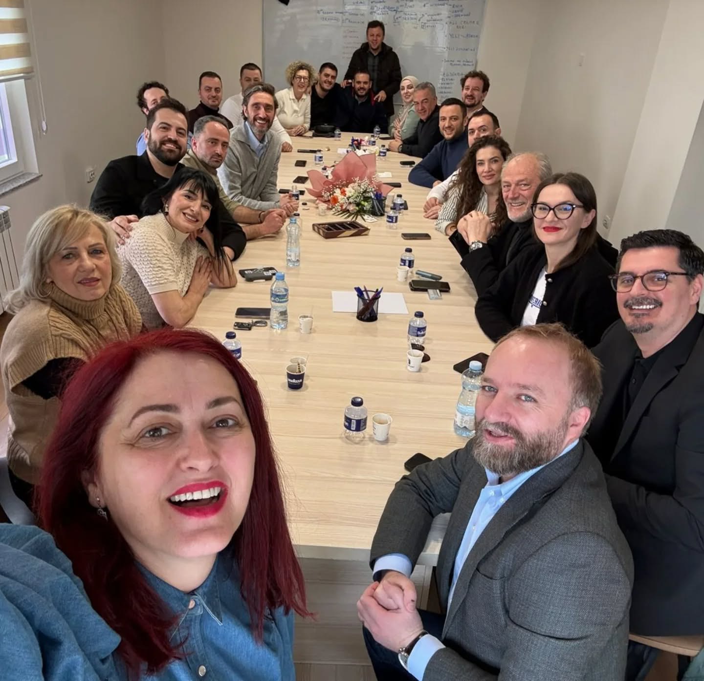 Kandidatja për deputete nga radhët e PDK-së, Eliza Hoxha, e ka postuar një fotografi në Facebook ku shihet tejet në disponim me kolegët e saj.