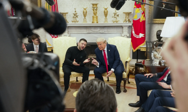Në fillim dy presidentët patën një përplasje miqësore rreth ndihmave europiane për Ukrainën, më pas ishte pyetja e një gazetari për veshjen e Zelenskyt që nisi diskutimin mbi respektin dhe në fund eskaloi në skenat e paprecedenta./Express/