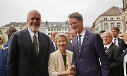 Jam shumë e lumtur që mirëpres këtu Edi Ramën, Kryeministrin e Shqipërisë. Kjo është një shenjë gjithashtu për Republikën e Moldavisë dhe, shpresoj, edhe për Gjeorgjinë, për të gjithë ata që kanë vendosur në favor të një të ardhmeje të lirë dhe paqësore në Bashkimin tonë, për një Evropë më të fortë dhe më të pavarur”, tha ajo.